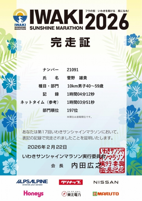 勢いあまって、郡山シティーマラソンの10㎞の部へも